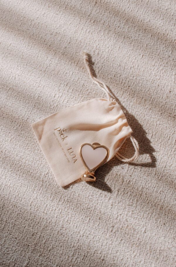 Zacht en tijdloos ontwerp: Het beige hartje zorgt voor een rustige en warme uitstraling.