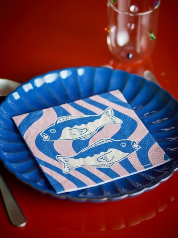 Breng kleur en creativiteit naar je tafel met deze vrolijke servetten. Ze zijn gemaakt van FSC®-gecertificeerd papier en voorzien van een speels grafisch vismotief met tekst. De levendige kleuren en het unieke ontwerp maken ze perfect voor elke gelegenheid – van een gezellige lunch tot een feestelijk diner.
